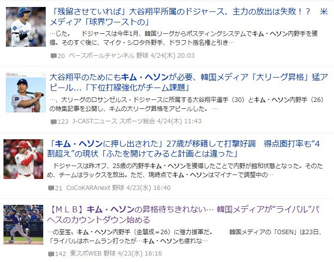 ヘソンがドジャースじゃなかったら記事にもならないだろ
