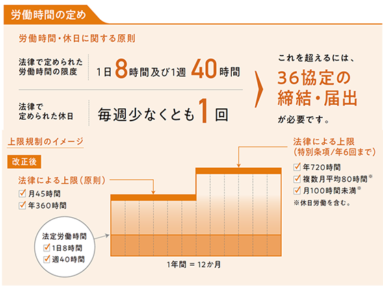 A 時間外労働の上限規制は、働き方改革関連法で2019年4月から導入されたルールです。原則として、1か月に45時間、1年で360時間までしか残業できません。