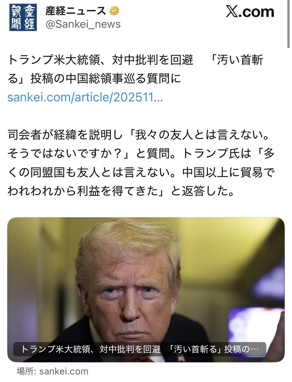 なおトランプは中国と仲良しの模様