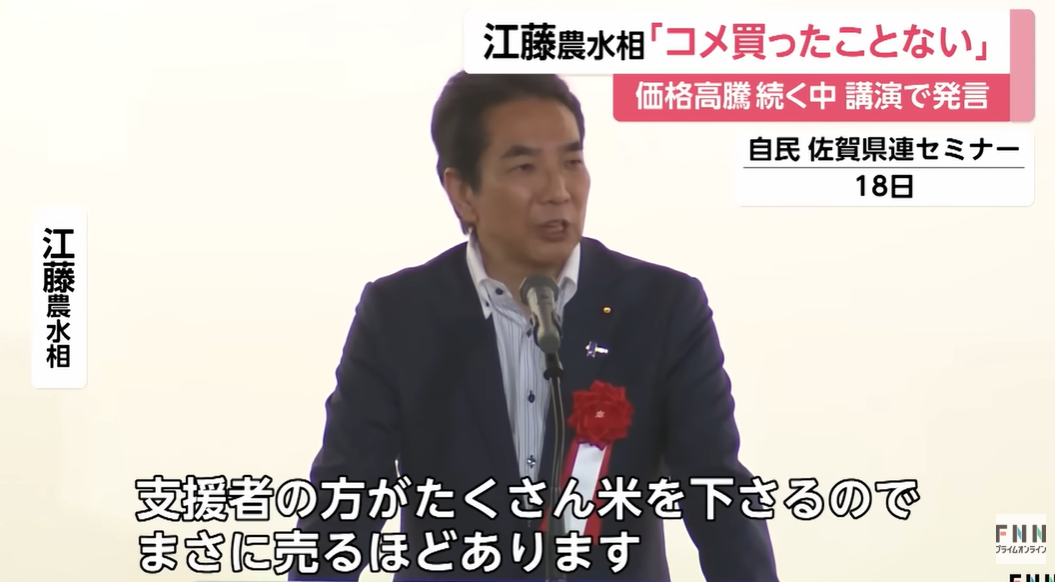 ・支持団体が持ってくるからコメ買ったことないし、倉庫に売るほどあって自分は困らない