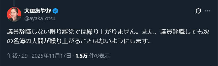 大津綾香が比例名簿から横山緑を削除して繰り上げ当選を阻止すると表明してる