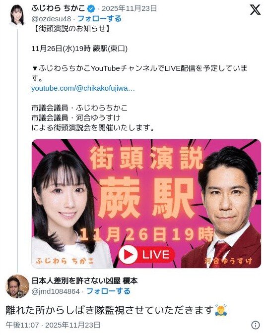 「そういう人物」なら、警察署がSNSをマークしていて、「11月25日に投稿」→「投稿を見た人から通報が相次ぐ」→「翌日に家宅捜索」という、異例のスピーディーな捜査になっても、理解はできるな。そして、その場で・警察官に対して、包丁を見せて威嚇なんて、完全にネジが飛んでいる。