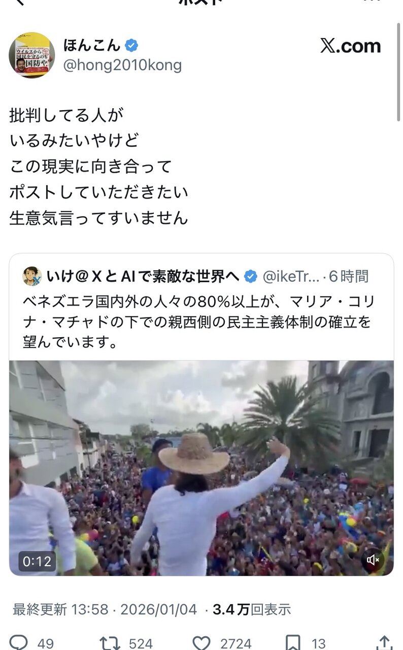 ベネズエラ攻撃で喜ぶ民衆がいるなら許されるって保守の理屈なら