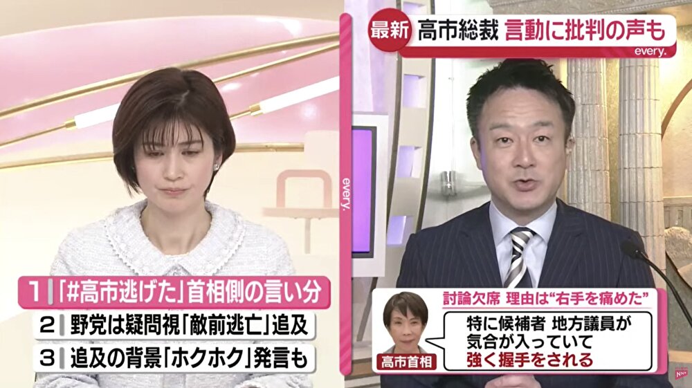 だいたい高市がリウマチ持ちで人工関節入れてるのは政治家やマスコミ関係者なら当然知ってるやろうに朝の番組に呼ぶのが間違ってたんとちゃう?