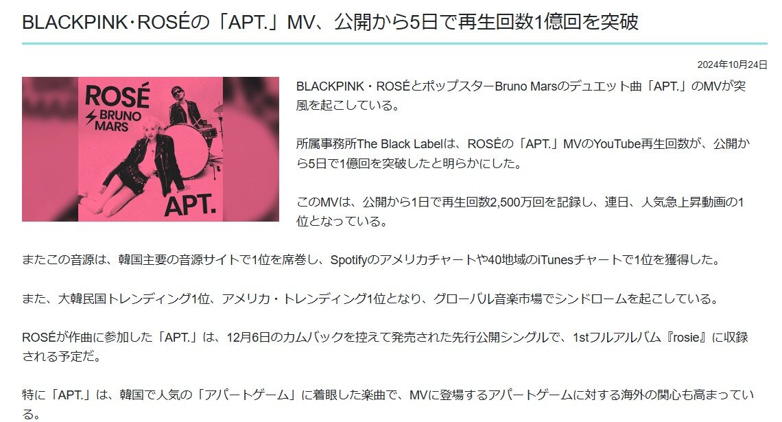5日で1億やとブルマとBPのアカツくらいや世界記録はBTSで1日やね