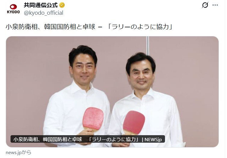 高市のドラムに続いて今度は小泉進次郎が韓国の国防大臣と卓球してた