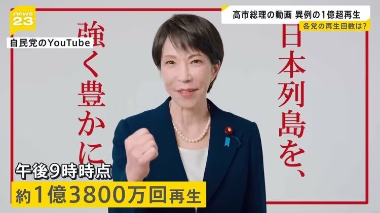 今回の衆院選では外国勢力による選挙干渉も有権者の意識に向かい、(真意はさて置き)外形的に正当でない要素が紛れもなく加わった。「討論番組は出演不可でもイギリス首相とは力強く握手可能な手、明らかに不自然な動画視聴回数」等は判り易く高市氏の信頼性と権威を損なった。先述の状況と通底する流れに御気付き頂きたい。純一郎氏より人気も低く、330は「外れ値」、合理的には疑って当然だ。遍く大切な皆様には、当コメントのコピペ等含め、未来に備えて頂ければ誠にありがたい