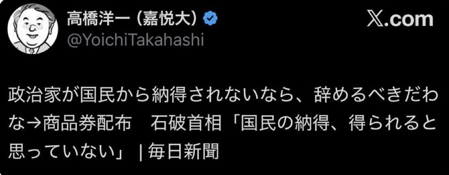 石破叩きのみ(高市リアクション待ち)