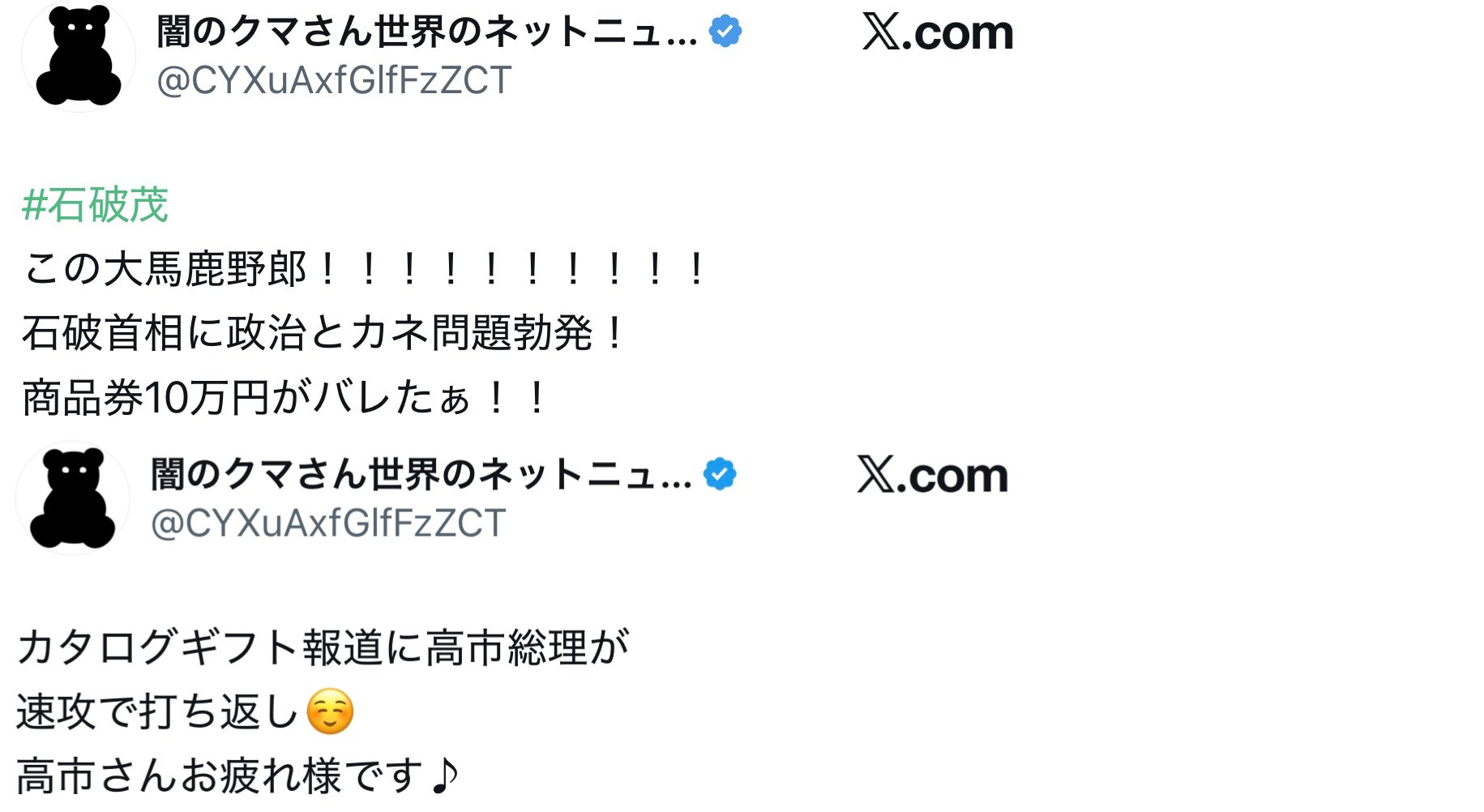 安倍の時も石破の時も問題なかったんだから 今回の高市も問題ないんじゃ?