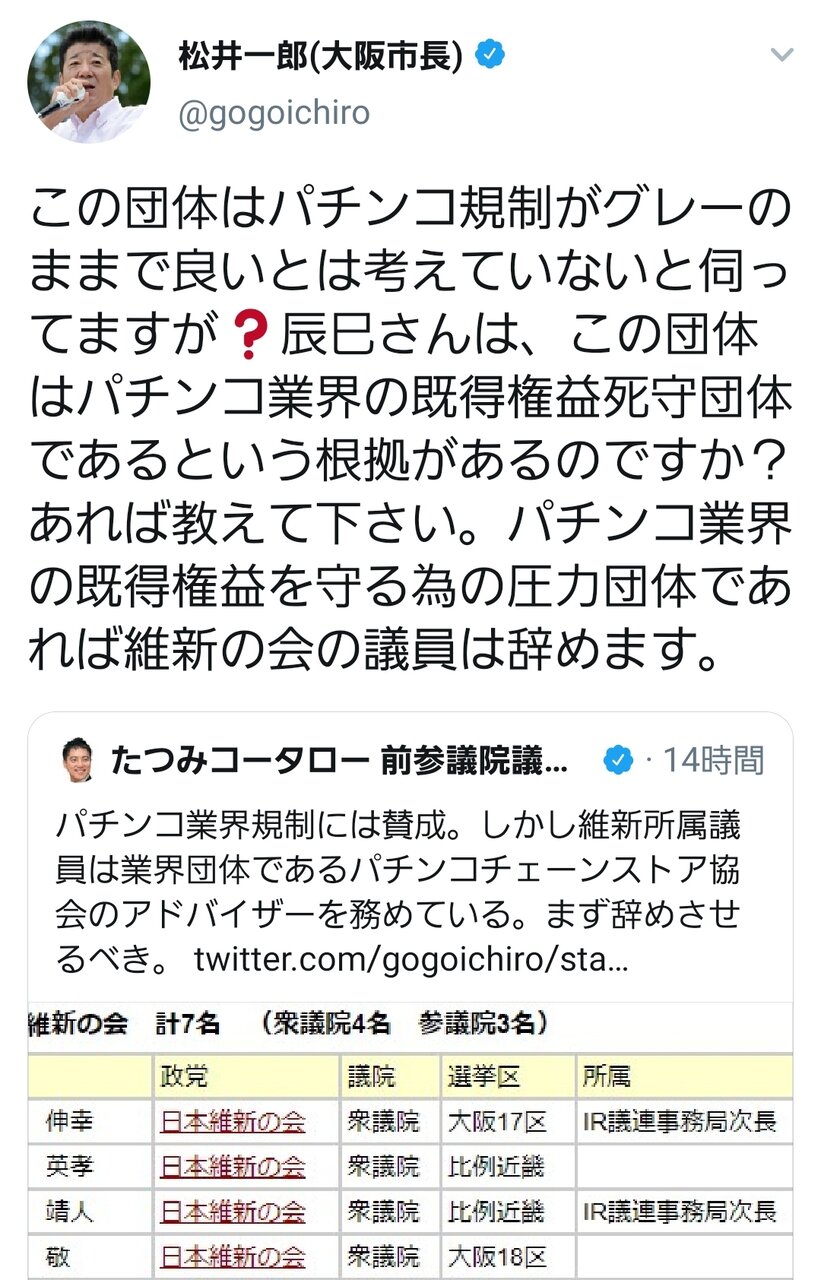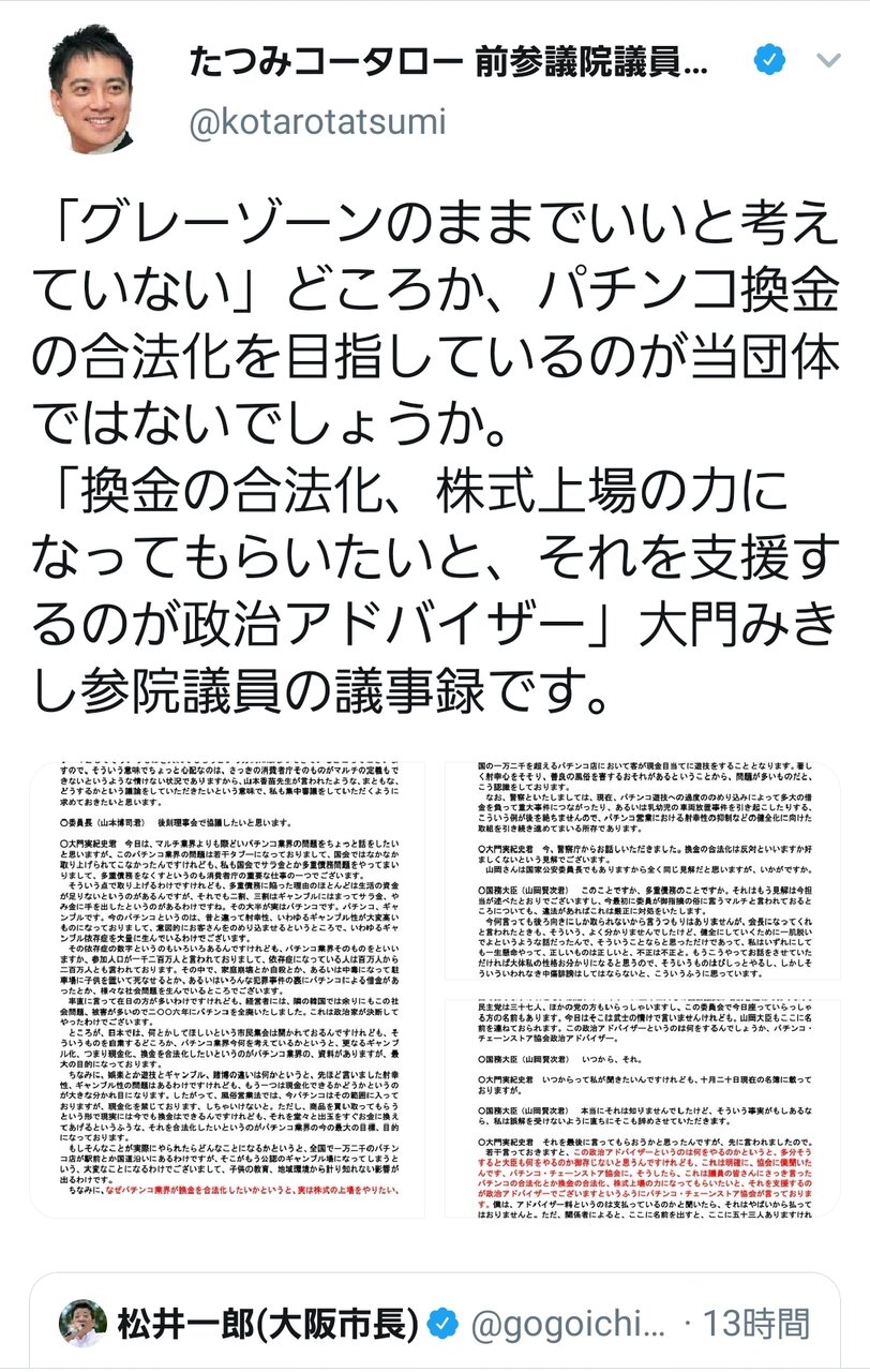 そもそも維新はマルハンが後援者にいて、パチンコ合法化を目指しとるんやけど、そんなことまるで知らんのやろな