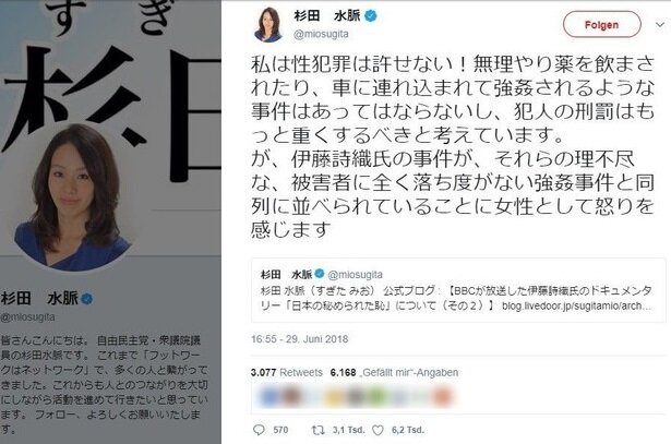 ツイッターで自分を中傷するツイートに繰り返し「いいね」を押されたことで名誉を傷つけられたとして、ジャーナリストの伊藤詩織氏(31)が20日、自民党の杉田水脈衆議院議員(53)に220万円の損害賠償を求め東京地裁に提訴した。