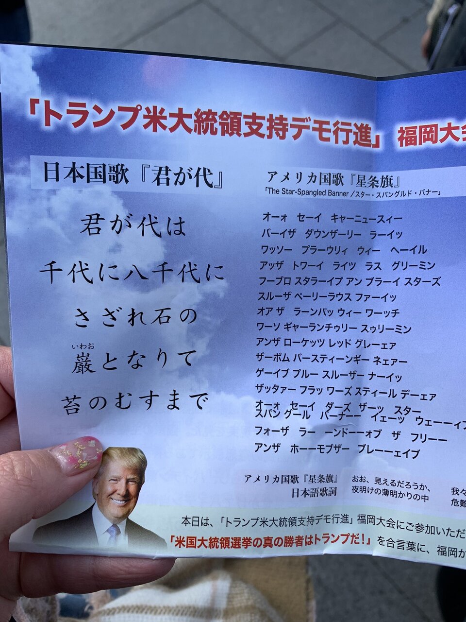 カタカナで書かなきゃアメリカ国歌も歌えないような連中がトランプ支持してデモするとかちゃんちゃらおかしいやろ