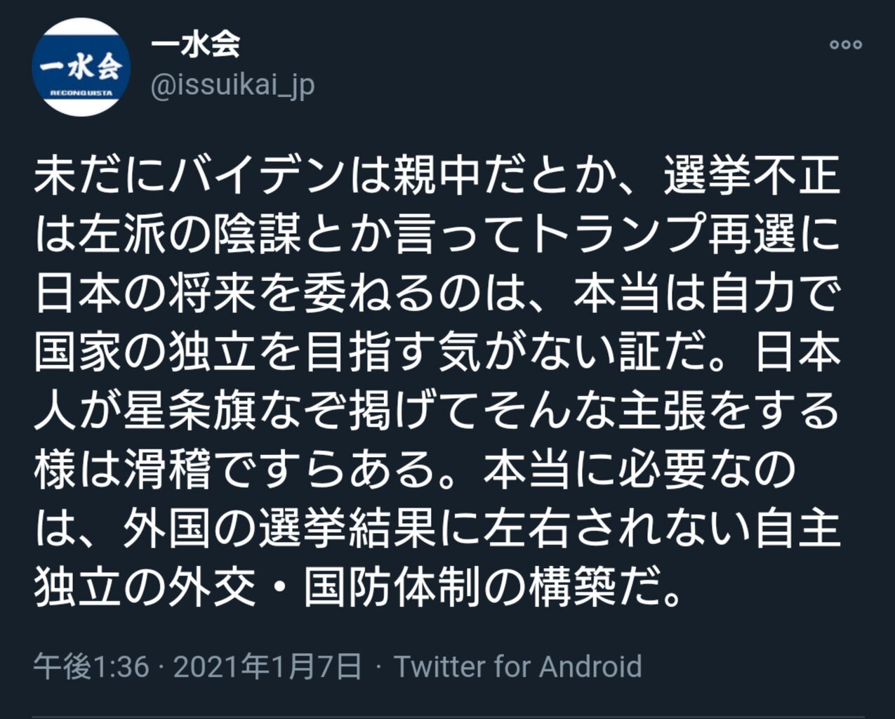 ネトウヨB「選挙結果ねじ曲げる為にデマ撒くぞ、選挙結果変えられなかったから議事堂に侵入するぞ、カルトっぽいデモもするぞ」