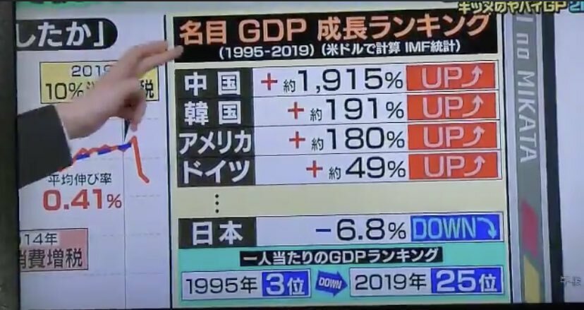 GDPは正確には、根拠になるものが各国バラバラで、麻薬取引きなど闇の経済を算入している国もある。日本は3年前までだか世界各国が算入している研究開発費まで除外していた。数兆円になり、GDPの連続性はなく、概略だけでしかない。韓国は一説によると韓国企業の海外生産まで算入しているようだ。いわば、出鱈目。同様に中国も地方政府の出鱈目な資料を基に算出しているので正確には不明だ。ひろゆきさん少しは調べて書いてくれ。