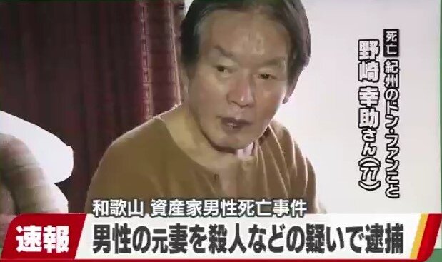 和歌山県田辺市で2018年、資産家として知られる会社経営野崎幸助さん=当時(77)=が死亡した事件で、県警は28日、殺人容疑で元妻(25)を逮捕した。