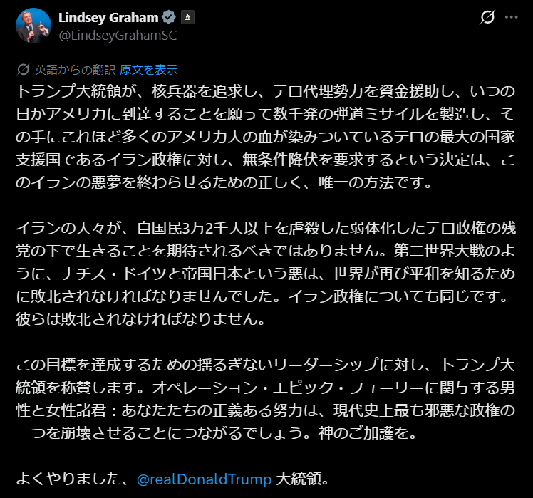 また、米FOXニュースの9日の報道によると、トランプ氏は番組の司会者に対し「船はホルムズ海峡を通過し、根性を見せる(Show Some Guts)べきだ。恐れることは何もない。彼ら(イラン)に海軍はない。我々はすべての艦船を沈めた」と語ったという。