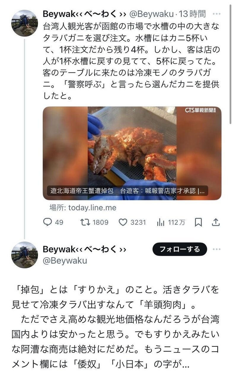 同氏は「われわれは保険会社と変わらない。台湾はわれわれに何も与えていない」と述べた。
