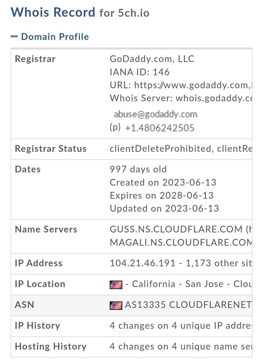 GoDaddyもアメリカの法律に従い『5ch.io』のドメインを停止する可能性が極めて高い
