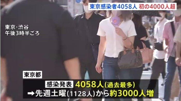 東京都内の22日の感染確認は初めて1万人を超えて1万1227人となりました。過去最多となるのは4日連続で感染の拡大が続いています。
