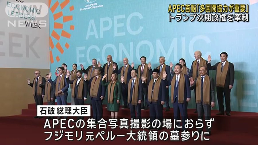 石破総理大臣はAPEC=アジア経済協力会議の閉幕に合わせた集合写真の撮影に間に合いませんでした。