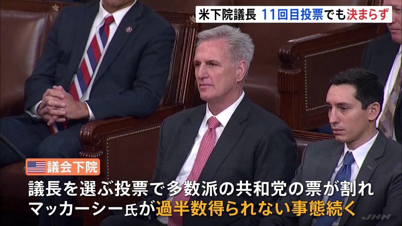 アメリカ議会下院では去年の中間選挙の結果、多数派となった野党・共和党内で保守強硬派の議員らが造反し、下院議長が選出できず、再投票が繰り返される異例の事態が続いています。