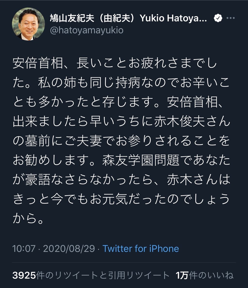 鳩山元首相「安倍首相は自殺した赤木さんの墓参りに夫婦で行くべき。森友問題であなたが豪語しなかったら今でもお元気だったでしょうから」 2020年08月29日 カテゴリ:民主党 1: 風吹けば名無し 2020/08/29(土) 14:55:26.96 ID:FOpHCnv/MNIKU https://twitter.com/hatoyamayukio/status/1299513895938191360?s=21 https://twitter.com/5chan_nel (5ch newer account) 引用元:https://swallow.5ch.net/test/read.cgi/livejupiter/1598680526/ 【鳩山元首相「安倍首相は自殺した赤木さんの墓参りに夫婦で行くべき。森友問題であなたが豪語しなかったら今でもお元気だったでしょうから」】の続きを読む タグ :#森友学園#公文書改ざん#佐川局長#近畿理財局#安倍晋三#鳩山由紀夫