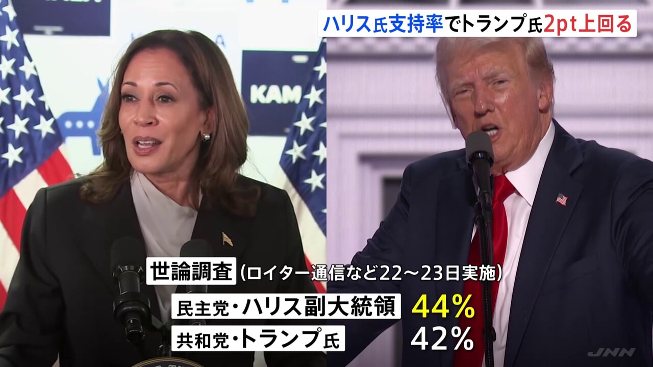 トランプ氏は「バイデンはハリスを憎んでいる」とし、シカゴで開催される民主党全党大会は操作されたものだと声を高めた。こうした主張に対する根拠は提示しなかった。