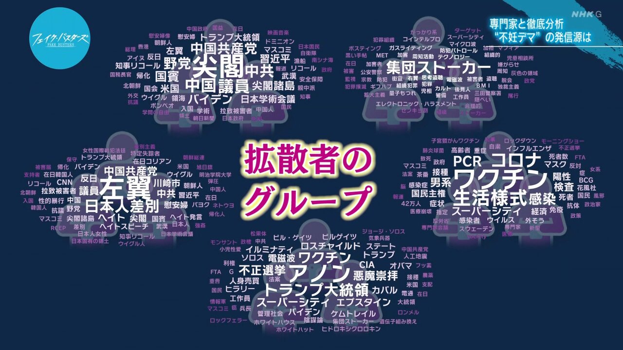 NHK「反ワクチンデマ拡散者のツイート抽出してみた結果www」 2021年08月12日 カテゴリ:カルト 1: 風吹けば名無し 2021/08/11(水) 06:28:03.09 ID:uIV6ex090 引用元:https://swallow.5ch.net/test/read.cgi/livejupiter/1628630883/ https://swallow.5ch.net/test/read.cgi/livejupiter/1628606572/ 【NHK「反ワクチンデマ拡散者のツイート抽出してみた結果www」】の続きを読む タグ :#反ワクチン#カルト#Jアノン#ファイク・バスターズ#日本人差別#Qアノン#不正選挙#陰謀論#川崎市#イルミティ