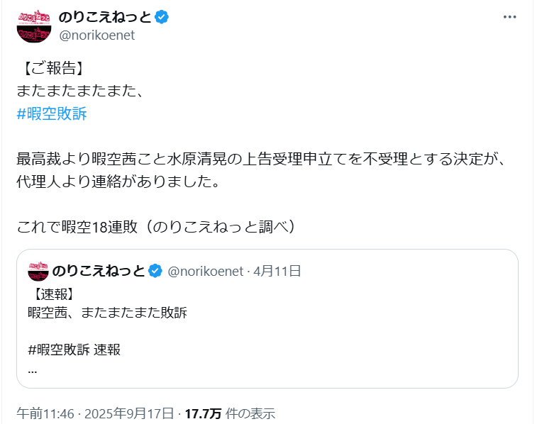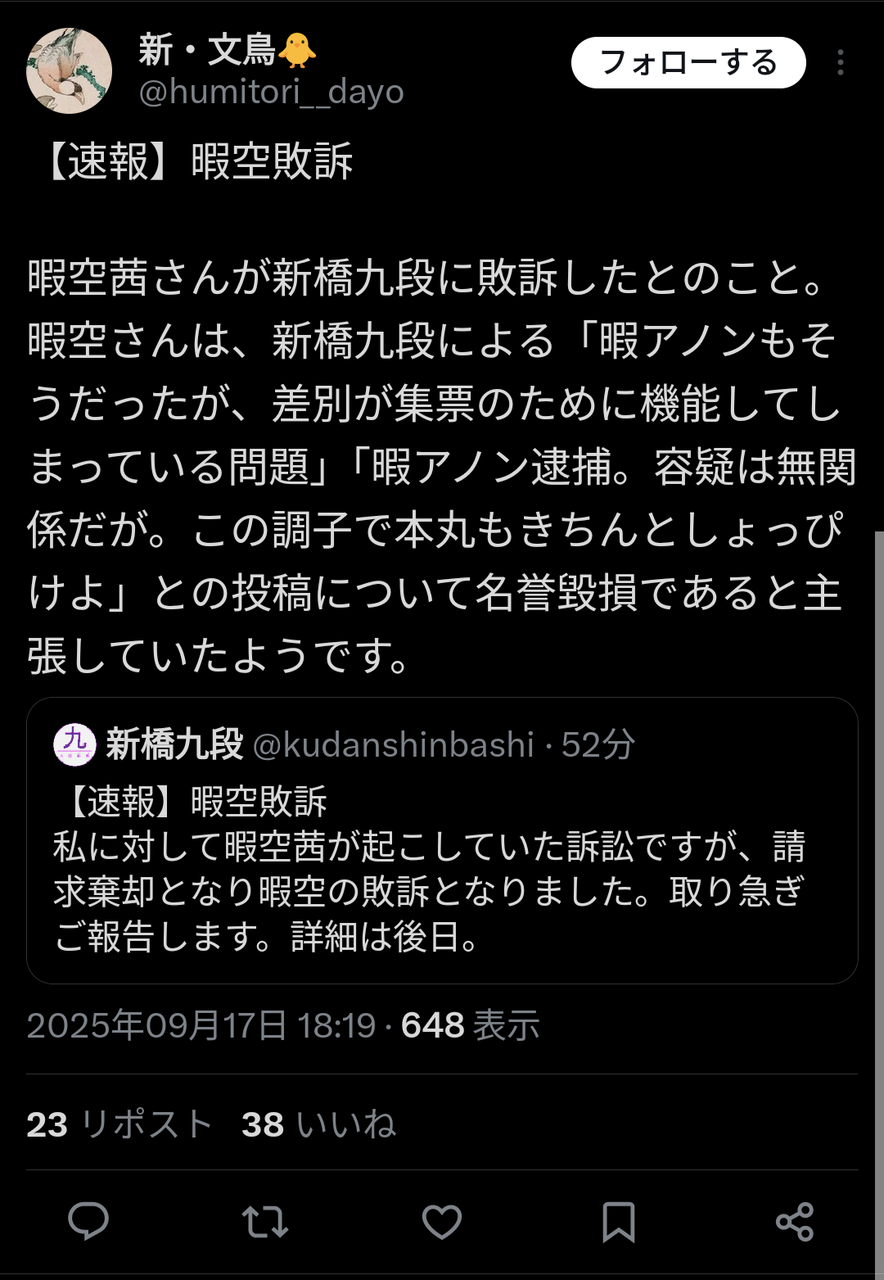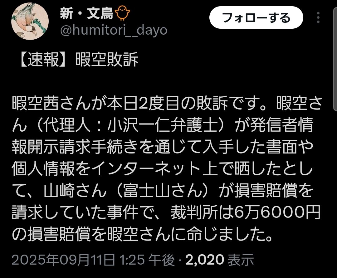 【最近あまり目立ってなかった暇空氏、9月もひっそりと4度敗訴】の続きを読む