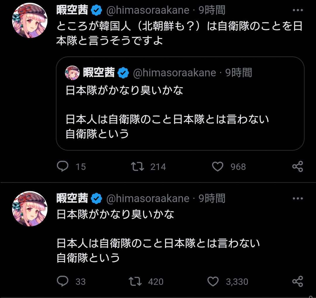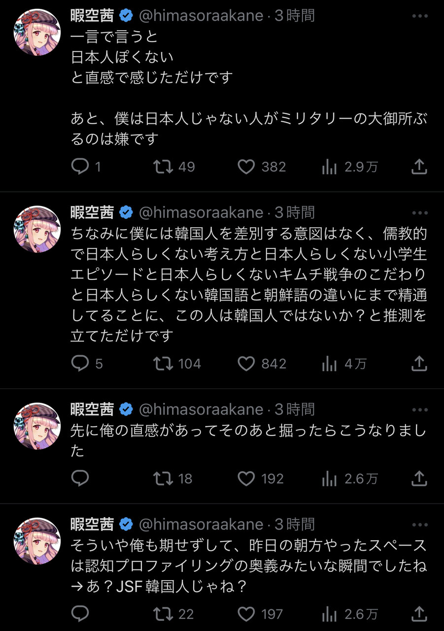 識者、大物ミリオタに対し「日本隊という表現は韓国人しか使わない」と国籍透視 →東野篤子氏に論破される 2023年04月23日 カテゴリ:戦争 3: それでも動く名無し 2023/04/22(土) 06:53:00.50 ID:jo2dA/Yo0 なんなんや・・・・ ※ 引用元:https://nova.5ch.net/test/read.cgi/livegalileo/1682113948/ 【識者、大物ミリオタに対し「日本隊という表現は韓国人しか使わない」と国籍透視 →東野篤子氏に論破される】の続きを読む タグ :#国籍透視#認知プロファイリング#専門家#無知#ミリタリー#JSF#東野篤子