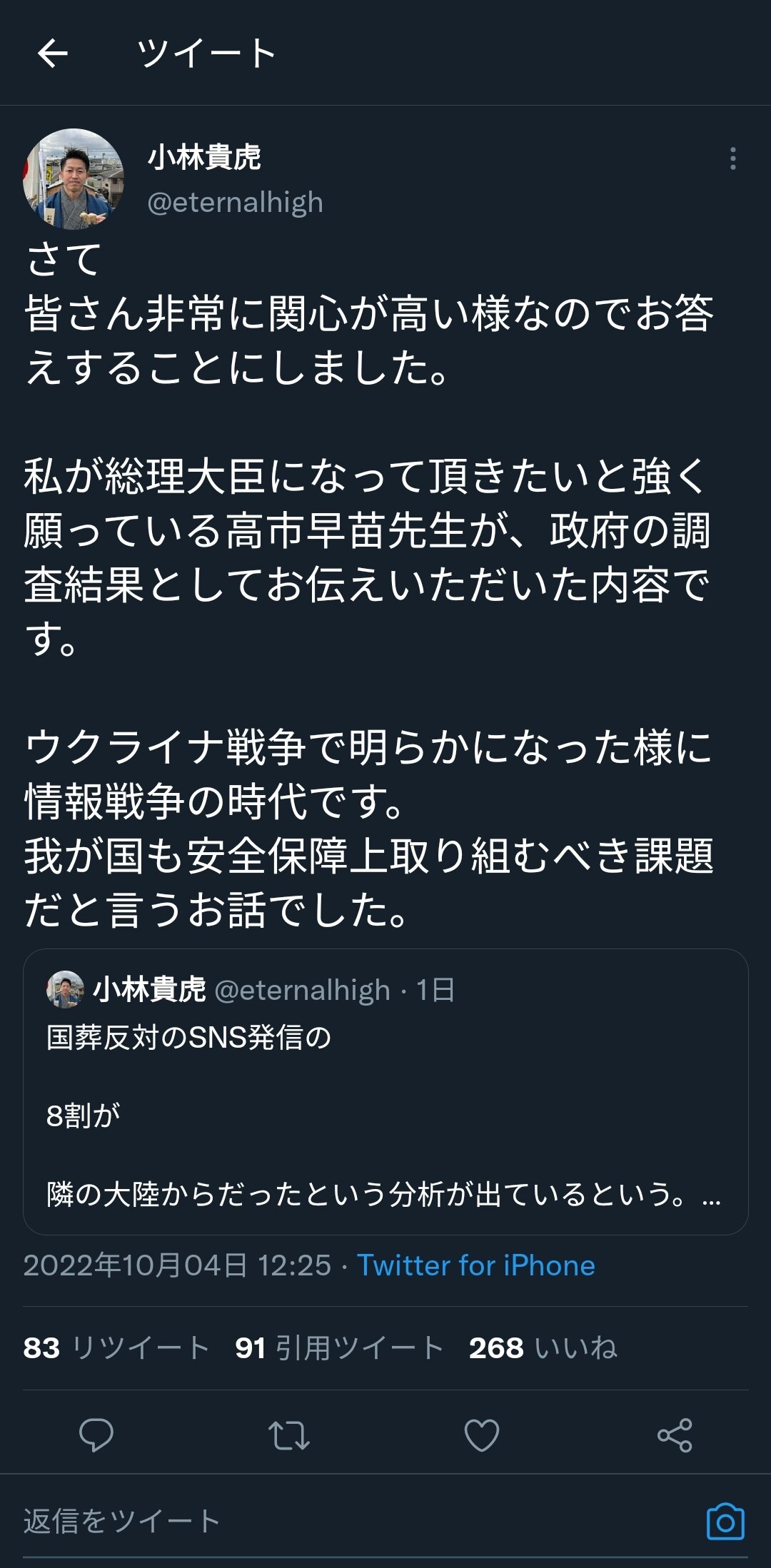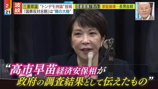 「高市大臣は『国葬に反対の人も多かったと思うが、弔問に来られた方は本当に多かった』と振り返っていました。安倍元首相の写真も演台の横に置かれており、思うところがあったのだと思います。そこで『国葬反対のSNS発信の8割が隣の大陸の人かなと思っている』といった発言をしました」