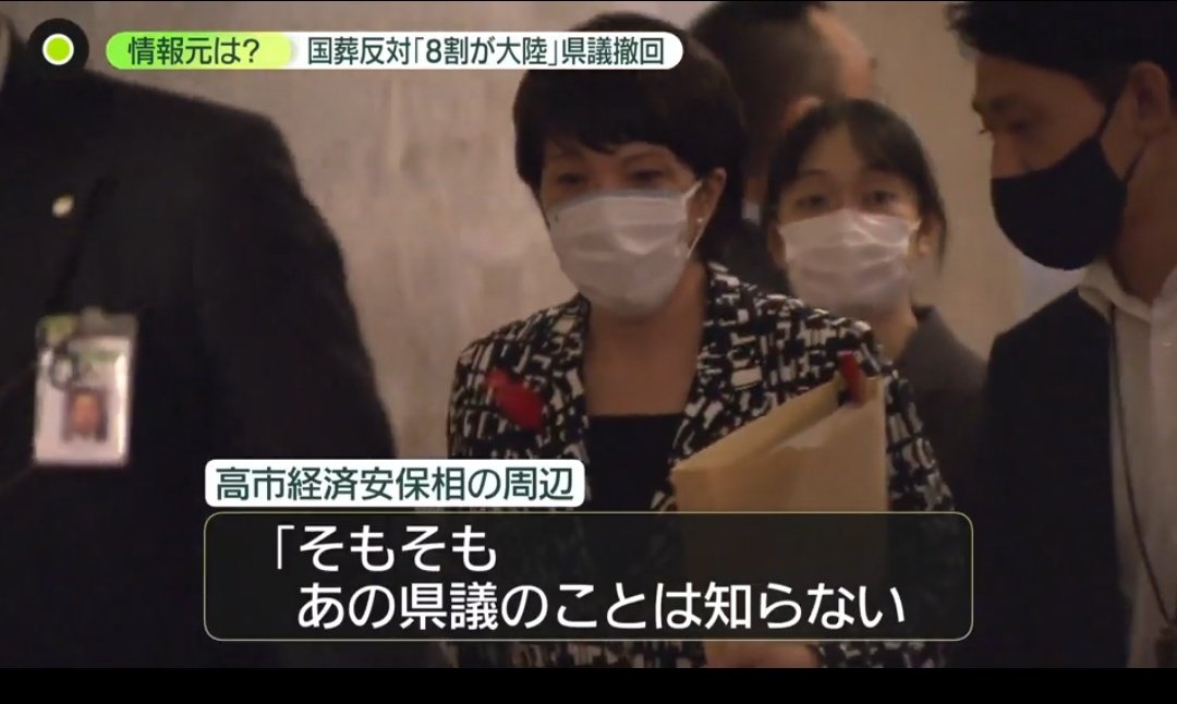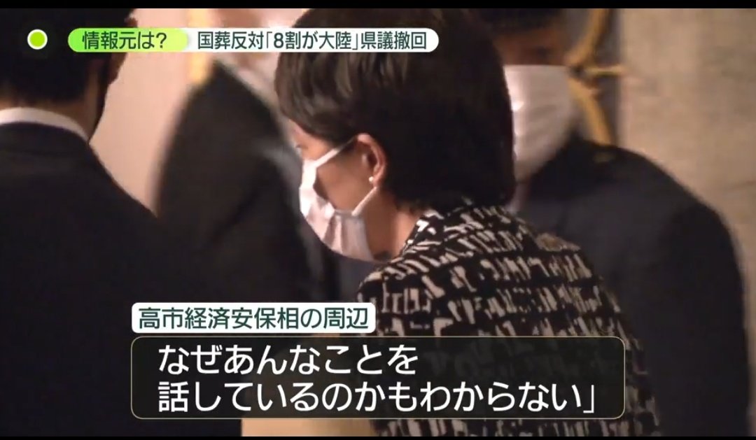 この市議によると、高市氏は「大臣としての立場ではなく、個人の立場として話す」と冒頭に発言し、話し始めた。内容は経済安保について。講演は50分程度だったが、国葬についての発言が最後にあった。時間にして1分もないくらいだったという。