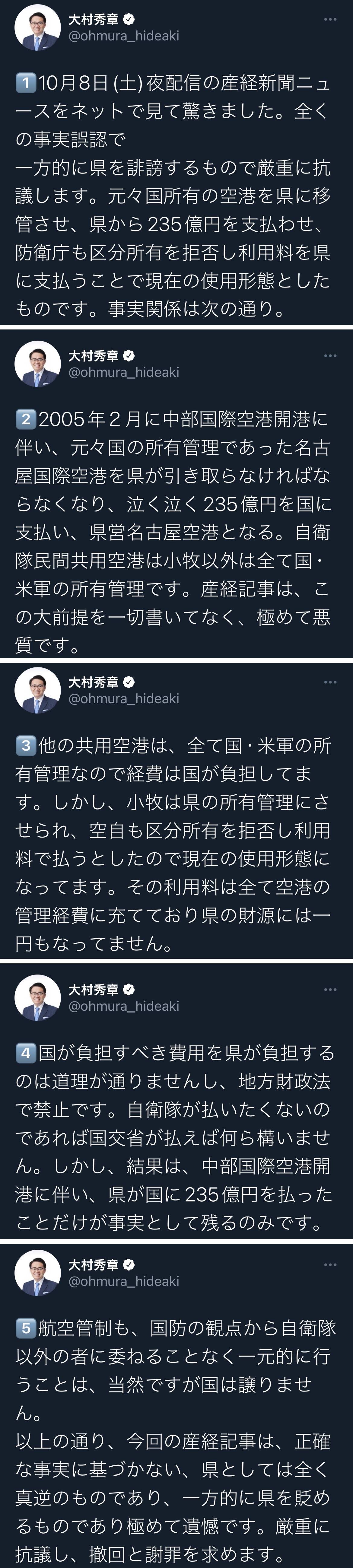 産経新聞の虚偽の記事について、防衛省から、小牧基地の経費負担については県の文書の通りであり、この記事は自衛隊と地元との信頼関係を傷つけるもので極めて遺憾だ。との表明がありました。関連して迷惑メールも。改めて、全く事実と異なる悪質な産経記事に対して厳重に抗議し謝罪と撤回を求めます。