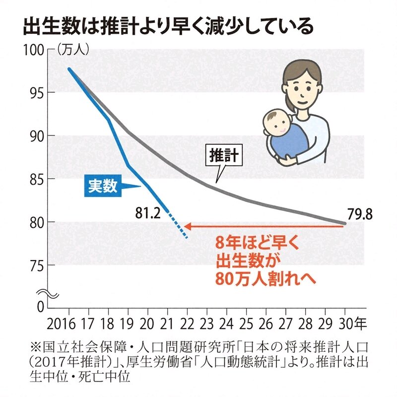 厚労省は「急速な少子化に歯止めはかかっておらず、危機的な状況は変わらない」としています。