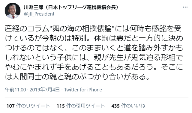 川淵三郎(日本トップリーグ連携機構会長)@jtl_President