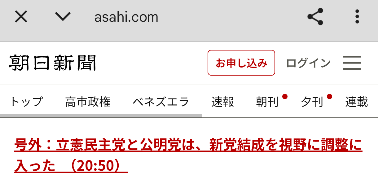 【【号外】立憲民主党と公明党、新党結成を視野に調整wwwww】の続きを読む
