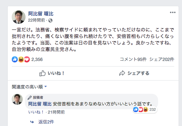 ネトウヨさん、「検察庁法改正見送りで困ったのは自治労に怒られる立憲だ」と謎の精神勝利 2020年05月21日 カテゴリ:立憲民主党 1: 風吹けば名無し 2020/05/20(水) 11:03:14.95 ID:aoKIjdXj0 なぜなのか 引用元: https://swallow.5ch.net/test/read.cgi/livejupiter/1589940194/ 【ネトウヨさん、「検察庁法改正見送りで困ったのは自治労に怒られる立憲だ」と謎の精神勝利】の続きを読む タグ :#検察庁法改正#自治労#りっけん#立憲民主党#全日本自治団体労働組合#国家公務員法#束ね法案