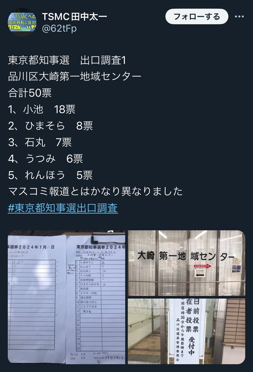 【【投票日/公職選挙法順守】都知事選、得票数予想】の続きを読む