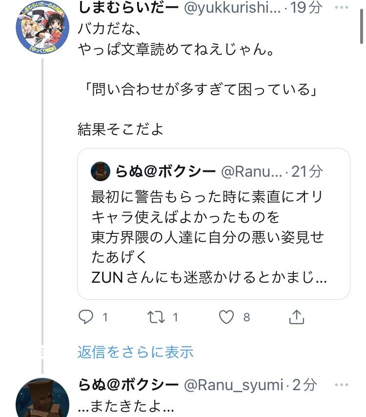 例のネトウヨゆっくり解説YouTuber「威力業務妨害だ!刑事・民事両方で動かざるを得ない!」 2022年04月06日 カテゴリ:ネットYouTuber/インフルエンサー 1: 風吹けば名無し 2022/03/30(水) 01:26:10.54 ID:VlUhm1m6p 引用元:https://eagle.5ch.net/test/read.cgi/livejupiter/1648571170/ 【例のネトウヨゆっくり解説YouTuber「威力業務妨害だ!刑事・民事両方で動かざるを得ない!」】の続きを読む タグ :#しまむらいだー#ゆっくり解説#ビジウヨ#絵師#東方project#逆ギレ#ネトウヨ#訴訟