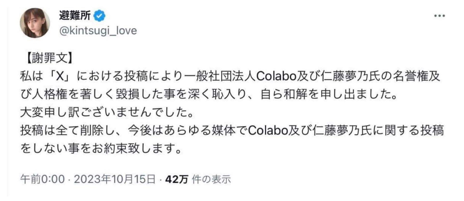 ーーその匿名アカウントがColabo弁護団の一人っぽいから調べてくれと言うことですか。