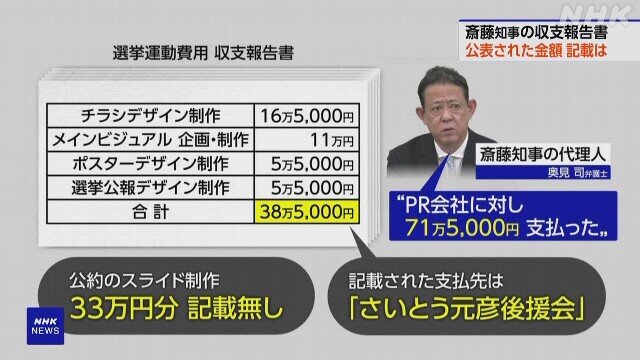 また、38万5000円の支払い先はいずれもPR会社ではなく、「さいとう元彦後援会」となっていました。