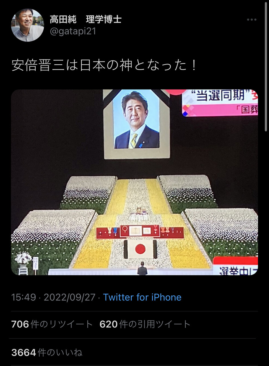 【朗報】安倍晋三さん、神になっていた 2022年09月29日 カテゴリ:安倍晋三カルト 1: それでも動く名無し 2022/09/28(水) 15:50:50.14 ID:sBLxS4Hl0 ソースは理学博士 引用元:https://nova.5ch.net/test/read.cgi/livegalileo/1664347850/ 【【朗報】安倍晋三さん、神になっていた】の続きを読む タグ :#国葬#物理学者#神格化