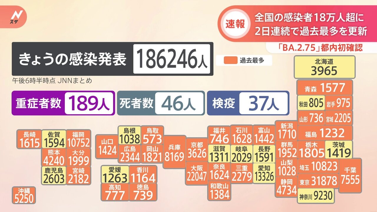 【統一教会に気をとられてる間にコロナ感染者数がとんでもないことになる… 東京都3万人超え、全国18万人】の続きを読む