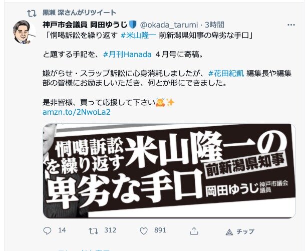 【【悲報】自民党議員「黒瀬深を訴えるなら俺を訴えろ」→無事米山隆一に訴えられ和解も絶望】の続きを読む