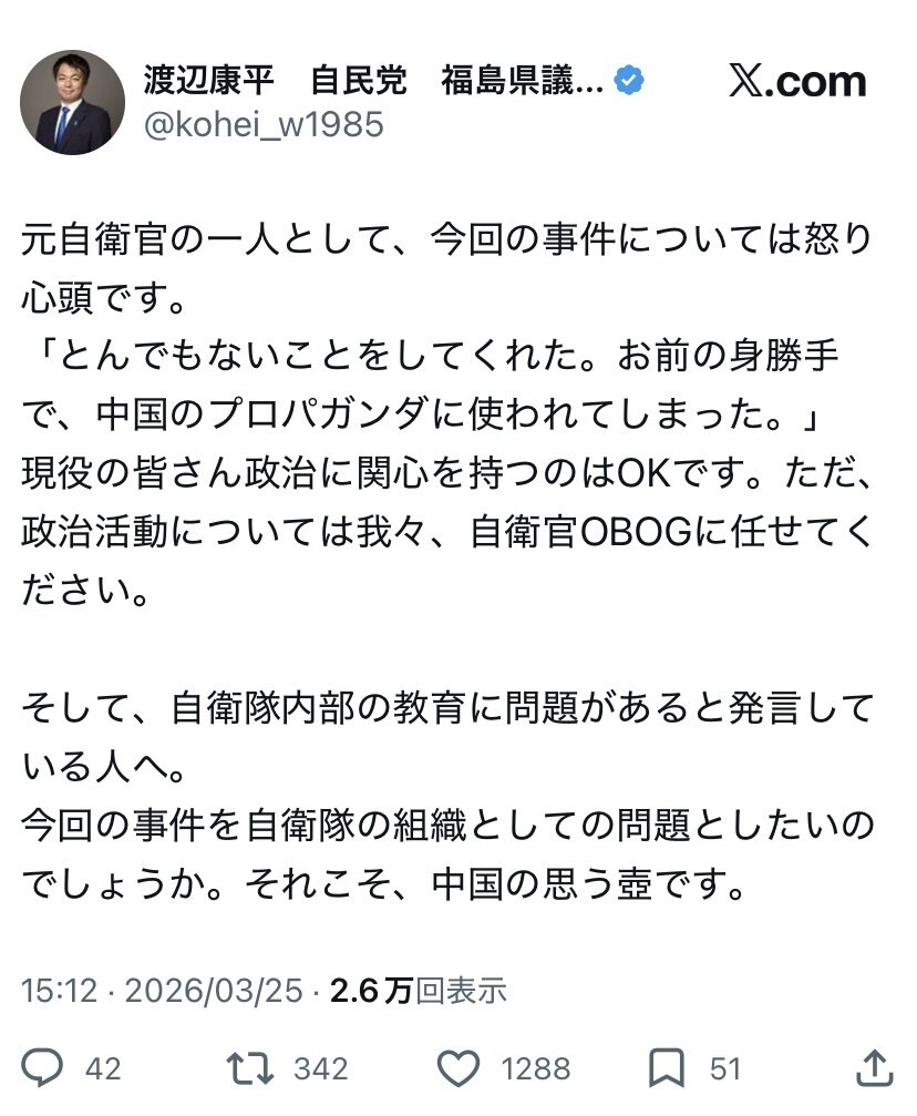 【【自民党大会】自衛隊陸幕長「指示されたら制服を着用できる規則だが、勝手に着ても違反ではない」記者「おかしくね?じゃあその規則は何のためにあるのか?」】の続きを読む