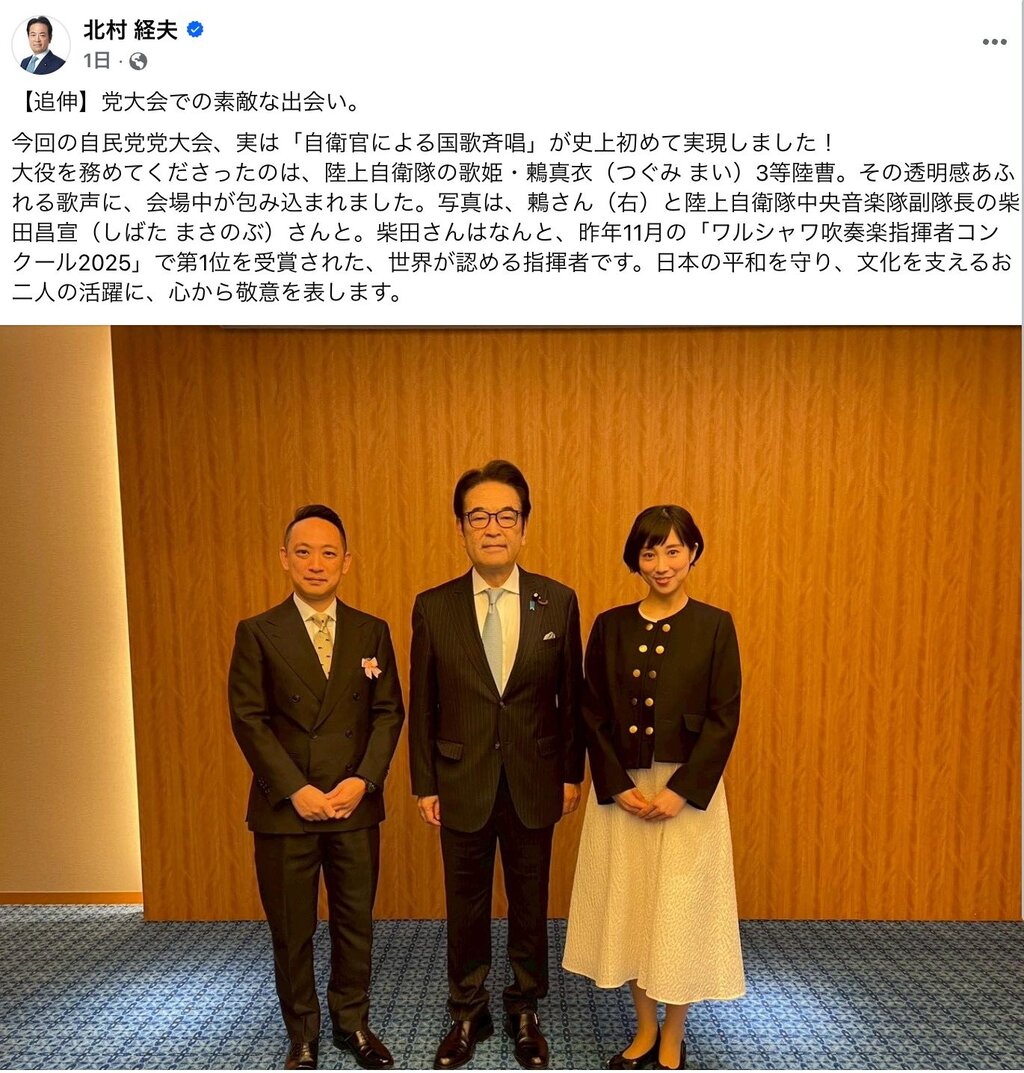 荒井陸幕長は「当該自衛官が通常演奏服装を着用して歌唱していたということは承知をしています。今ご指摘のありました演奏服装については、自衛官服装規則第13条の2において、陸上幕僚長が演奏のため特に必要があると認めて指示する時に着用することができる旨を規定をされております。今回の国歌の歌唱については私人としての行為であり、私の指示を受けたものではありません」と、着用指示をしていないことを認めた。