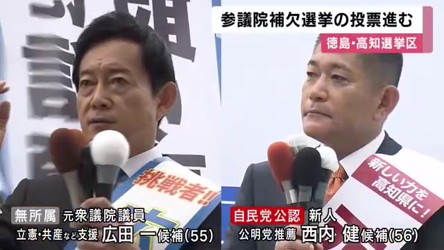 与野党対決の構図となった参議院徳島高知選挙区の補欠選挙は、無所属の元参議院議員で野党4党が支援した広田一氏(55)が3回目の当選を果たしました。