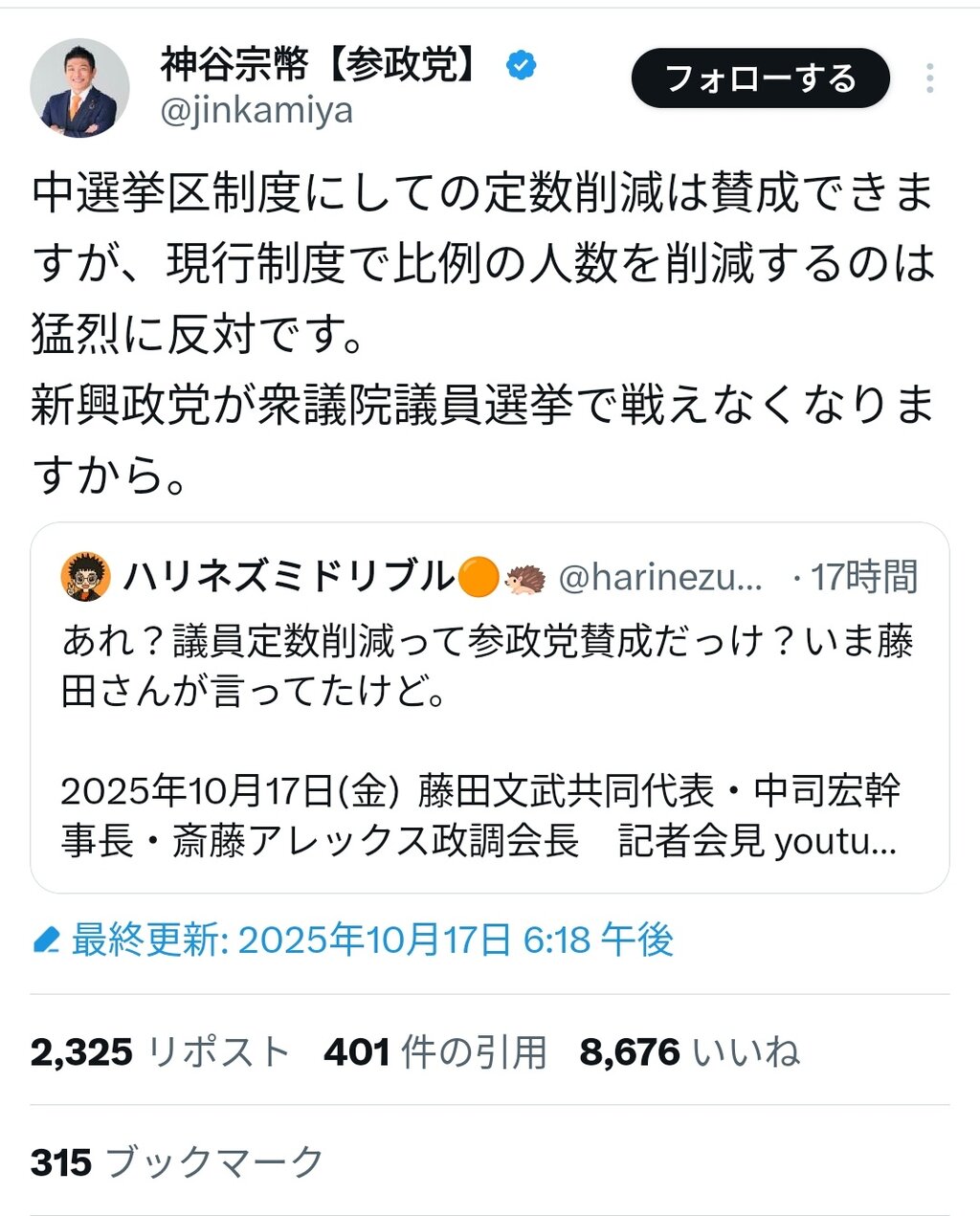【高市首相、議員定数削減1割の理由は「民主党が提出したから」】の続きを読む