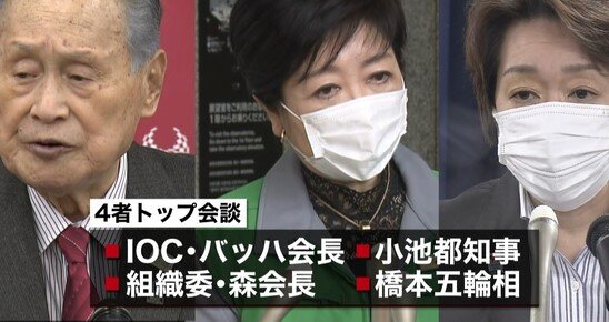 【速報】 森喜朗氏の女性蔑視発言を受け、東京都の小池知事は東京五輪のトップ級4者会談に出席しない意向を明らかにした