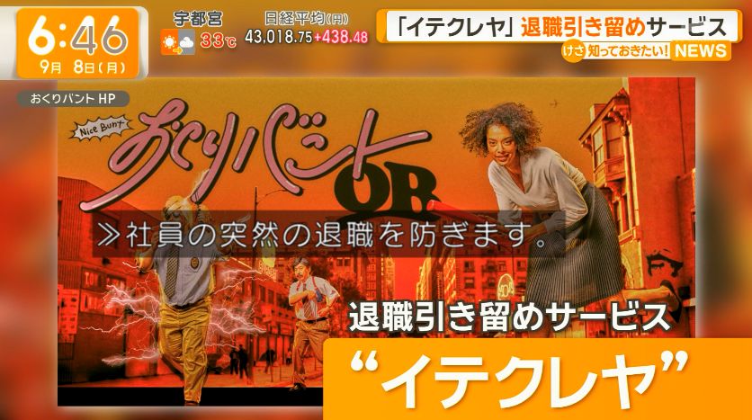 広告会社の「おくりバント」が始めたのは“退職引き留め”サービス「イテクレヤ」です。